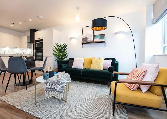 A City Centre - Free Parking - Stylish 2 Bedroom Apartment az Ashley körzetben helyezkedik el, egy 23 perces autóútra a Bristol (BRS-Bristol nemzetkozi ) repülőtértől. A Bristoli Ipari Múzeum 1 km-re helyezkedik el. A Cabot Circus bevásárló- és szabadidőközpont rövid útra helyezkedik el az apartmantól.